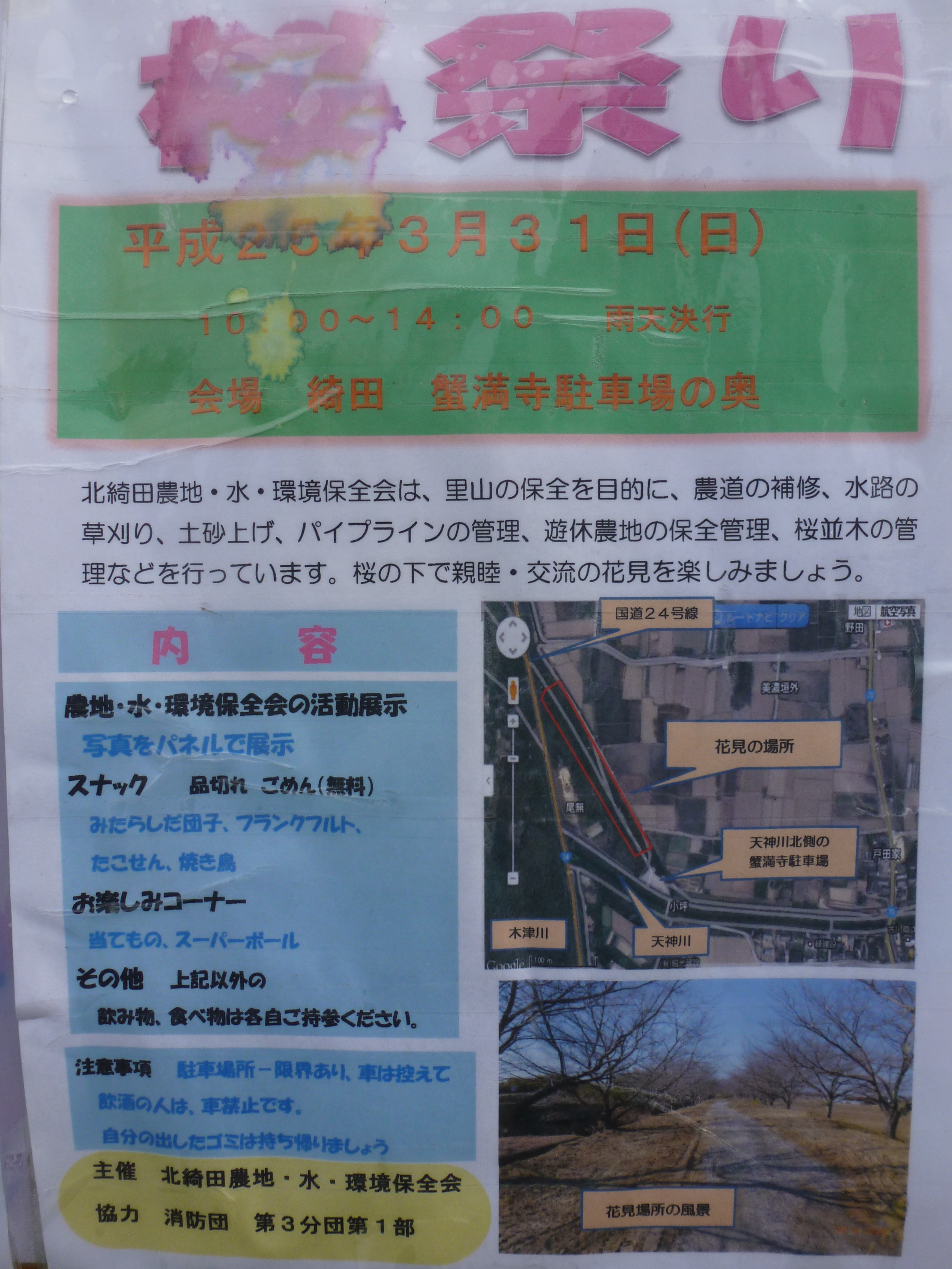 また、国道24号線東側・蟹満寺駐車場付近で3月31日日曜日に桜祭りが開催されます。
