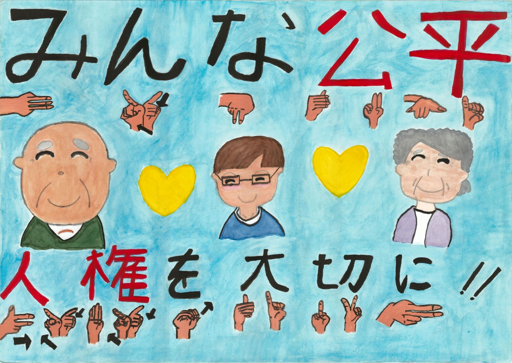 基本的人権について一層理解を深め、人権尊重の精神を養うことを目的に、木津川市人権啓発協議会でポスターを募集しましたところ、市内の小・中学生から674点の応募をいただき、ありがとうございました。