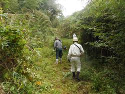 5月に切り開いた通路も、夏の高温ですっかり茂ってしまったので、再度刈り込んでいきました。