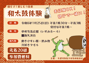 和太鼓演奏・体験等を通じて親子の交流を深めませんか?